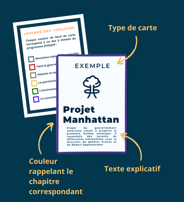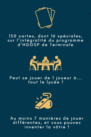 Le jeu comporte 150 cartes et couvre l'ensemble du programme de terminale d'HGGSP